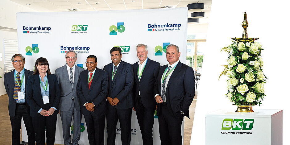 Spürbar war, dass BKT und Bohnenkamp einen Grundsatz teilen: »Ein guter Reifen braucht Beständigkeit: Von der Entwicklung über die Fertigung bis hin zur Beratung vor Ort fordern wir von uns selbst ein hohes Maß an Qualität ein«, so Gregor Rüth, Vorstandsvorsitzender bei Bohnenkamp. Begonnen hat die Partnerschaft zwischen BKT und Bohnenkamp mit einer typisch deutschen Note. Nachdem Bohnenkamp-Einkaufsleiter Harm Jonkeren 1998 im Rahmen einer Essener Messe mit BKT ins Gespräch kam, folgte nur kurze Zeit später die erste Lieferung an Implement-Diagonalreifen. »Typisch deutsch hat Bohnenkamp unsere Reifen dann erst mal zum TÜV geschickt – zum Glück mit sehr gutem Ergebnis«, wie Arvind Poddar schmunzelnd anfügte. Tatsächlich erwies sich das, was BKT produktseitig zu bieten hatte, als auffallend hochwertig – der Startschuss also für Bohnenkamp, um mit BKT-Reifen am deutschen Markt durchzustarten.