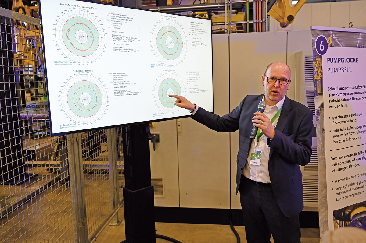 Thomas Kettler, Leiter Logistik bei Bohnenkamp, erklärte, wie wichtig die Rundlaufprüfung sowie die Überprüfung des Seitenschlags der Felge ist: »Jede Abweichung hat Auswirkungen auf das fertige Produkt, weshalb hier höchste Präzision gefragt ist.«