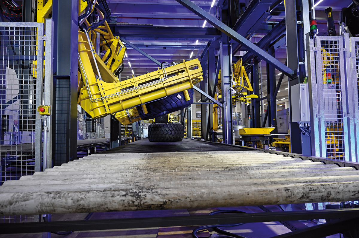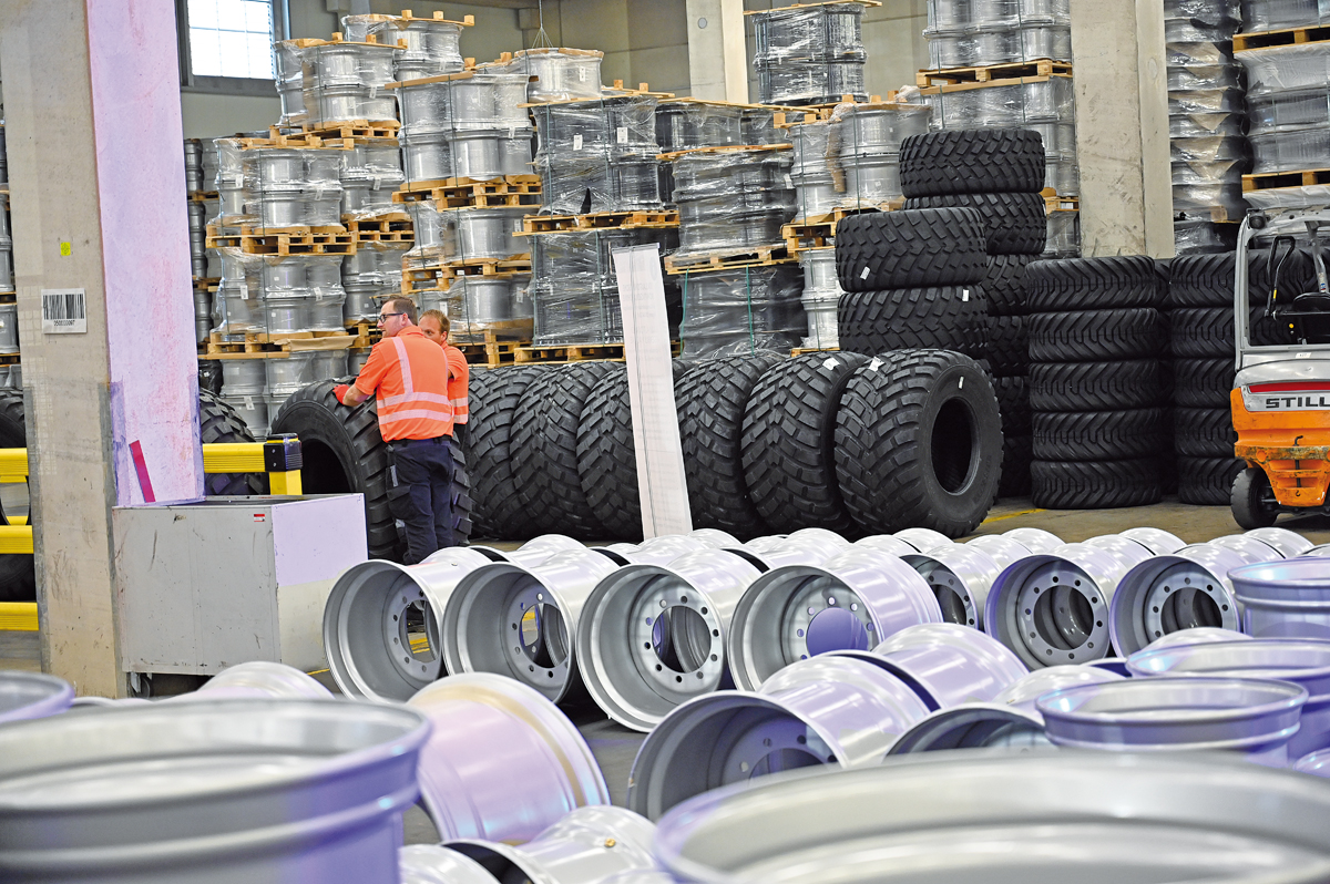 Das Herzstück: Der Reifengroßhändler hat in eine neu konzipierte Montagemaschine investiert, die die vollautomatische Montage von Reifengrößen bis 52" ermöglicht.