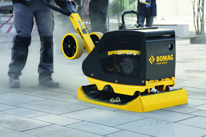 Einen weiteren Schwerpunkt legt Bomag auf praktische Lösungen mit wirtschaftlichem Nutzen. Exemplarisch hierfür steht die Stoneguard-Pflasterplatte, die für das Einrütteln von Pflastersteinen entwickelt wurde. Beim Einsatz herkömmlicher Maschinen liege, so Bomag, die Bruchrate der zu verdichtenden Steine bei bis zu 30 %. Mithilfe eines verschleißfesten Kunststoffelements unter der Grundplatte reklamiert Bomag für sich, diese Bruchrate, speziell bei scharfkantigen und großformatigen Steinen, auf nahezu 0 % gesenkt zu haben. Auch unzugängliche Stellen können so verdichtet werden, da der Bediener an Einbauten direkt heranfahren kann, ohne sie zu beschädigen.