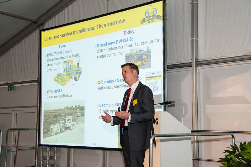 »Für uns sind die alle zwei Jahre stattfindenden Innovation Days die wichtigste Veranstaltung, weil unsere Kunden unsere Produkte hautnah erleben können. In unserem neuen Demonstrationszentrum können wir unsere neuen Technologien und Ideen in einer realitätsnahen Baustellensituation präsentieren«, sagte Ralf Junker und betonte: »Die Stärken von Bomag liegen in unserer Expertise im Maschinenbau, in unserer Produktionstiefe und unserem Qualitätsanspruch. Wir sind davon überzeugt, dass der enge partnerschaftliche Austausch mit unseren Kunden einer der Schlüsselaspekte ist, um erfolgreich auf die Anforderungen des Marktes reagieren zu können. Denn bei Bomag heißt es immer ›Customer first!‹«