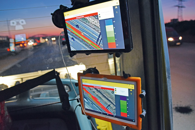 Die Visualisierung der Arbeitsergebnisse, in Kombination der jeweils aktuellen Walzenposition, erleichterte den Walzenfahrern in der langen Nachtschicht die Orientierung, weil die »normale« Sichtorientierung bei Nacht auf dem »schwarzen Band« erheblich ermüdet und ungenau ist. t