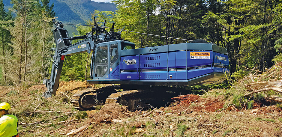 Die hydraulische Winde befindet sich im Heck des Raupenfahrzeugs, wo die kompakten Raupenantriebe mit bis zu 85 000 Nm Drehmoment und hoher Drehmomentdichte als Zwillingsantrieb verbaut sind. Das Windensystem wird nicht nur in forstwirtschaftlichen Anwendungen verwendet, sondern kommt auch in anderen anspruchsvollen Anwendungen wie zum Graben, Laden und Schaufeln zum Einsatz. Dabei wird ein hohes Maß an Sicherheit durch integrierte Funktionen und Alarme erreicht, die die Sicherheit der Bediener gewährleisten und ihnen somit die erforderliche Konzentration auf Ihre Aufgabe ermöglichen.