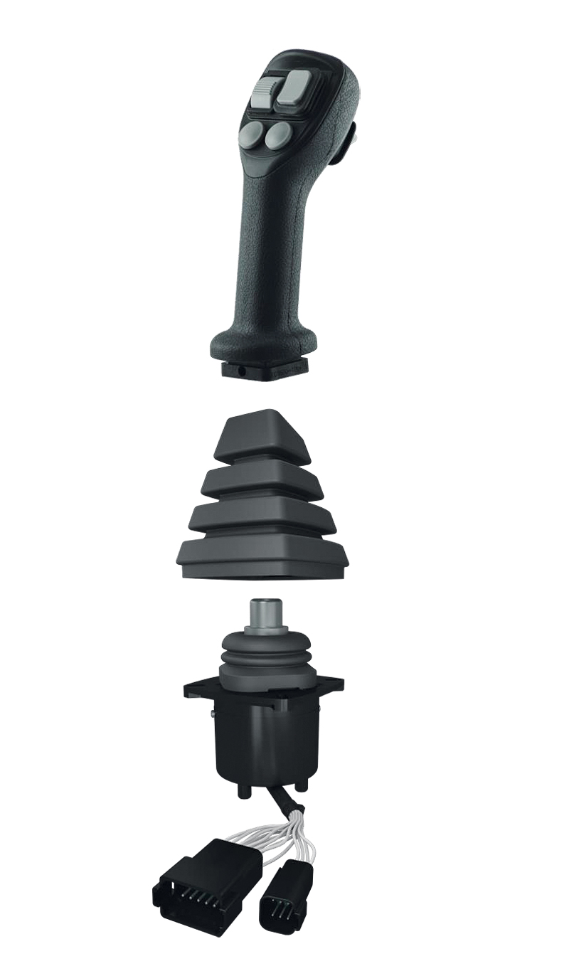- Mit seinem neuen Joystick »Sense+« ermöglicht Bosch Rexroth eine flexible Anpassung an unterschiedliche Anwendungen und Maschinenoptionen.