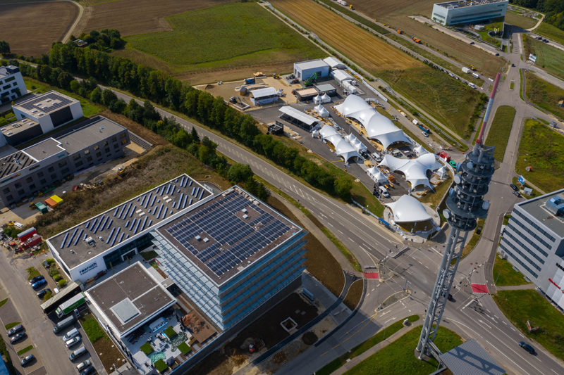 Bereits beim Betreten des Areals wurde deutlich, dass Bosch Rexroth »rangeklotzt« hat: Es ergibt sich ein schlüssiges Gesamtkonzept, bestehend u. a. aus dem großem »TechPark«-Freigelände und einer Modellfabrik. Der »TechPark« verfügt über Vorführflächen mit Tribünen sowie Werkstätten und Maschinentestbereiche, um gemeinsam an innovativen Lösungen zu arbeiten, neue Lösungen zu präsentieren und Workshops abzuhalten. Auf diese Weise, so das Unternehmen, wolle man eigene Innovationen im Sinne des Wortes für die Besucher greifbar machen. Kernziel des Ganzen ist es, dass Profis von Profis lernen und sich dabei auf Augenhöhe in einem angenehmen Umfeld begegnen. »In Ulm bringen wir zusammen, was zusammen gehört: Kunden und Innovationen«, urteilte Rolf Najork, Geschäftsführer der Robert Bosch GmbH mit Verantwortung für den Bereich Industrietechnik und Vorstandsvorsitzender der Bosch Rexroth AG.