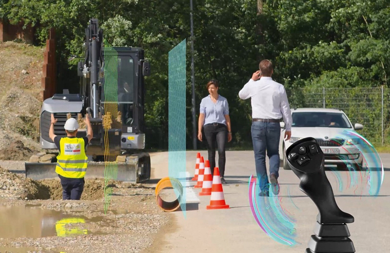- Zusätzlich zum angenehmen Bedienkomfort durch die ergonomische Gestaltung warnt der Joystick »Sense+« den Maschinenbediener per Vibrationsfunktion, wenn etwa die Baggerschaufel zu nah an ein Hindernis gerät.