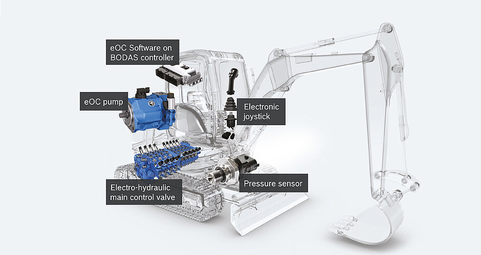 Die elektronisch ansteuerbare Hydraulikarchitektur eOC (electronic Open Circuit) will Maschinenhersteller in die Lage versetzen, Arbeitsanwendungen und Fahrantriebe in einem offenen Kreislauf dynamisch zu regeln, um das volle Potenzial der mobilen Maschine auszuschöpfen (bauMAGAZIN 9/22, Seite 184). Durch die Übertragung von Regelungsfunktionen in die Software will Bosch Rexroth die Arbeitsmaschinen noch vielseitiger und flexibler einsetzbar und bei gesenktem Energieverbrauch noch produktiver machen.