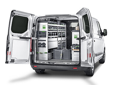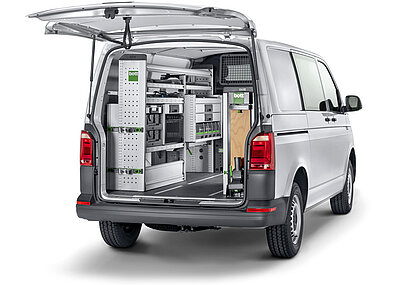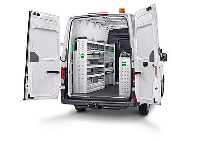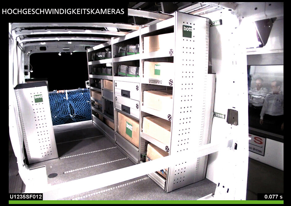 Das geringe Gewicht der Leichtbaueinrichtung hilft Kraftstoff einsparen. Durch die neue Konstruktion der Fahrzeugeinrichtung aus Aluminium haben die Entwickler von bott die Einrichtung im Verhältnis zur vorherigen Generation um 15 % im Durchschnitt leichter gemacht. Einen stabilen Aufbau der Fahrzeugeinrichtung löst der Hersteller mit speziellen Strangpressprofilen. Bei einem Auffahrunfall fangen diese die entstehenden hohen Belastungen ab (das bauMAGAZIN berichtete bereits über vario3 umfassend in Heft 7/19, Seite 78). t