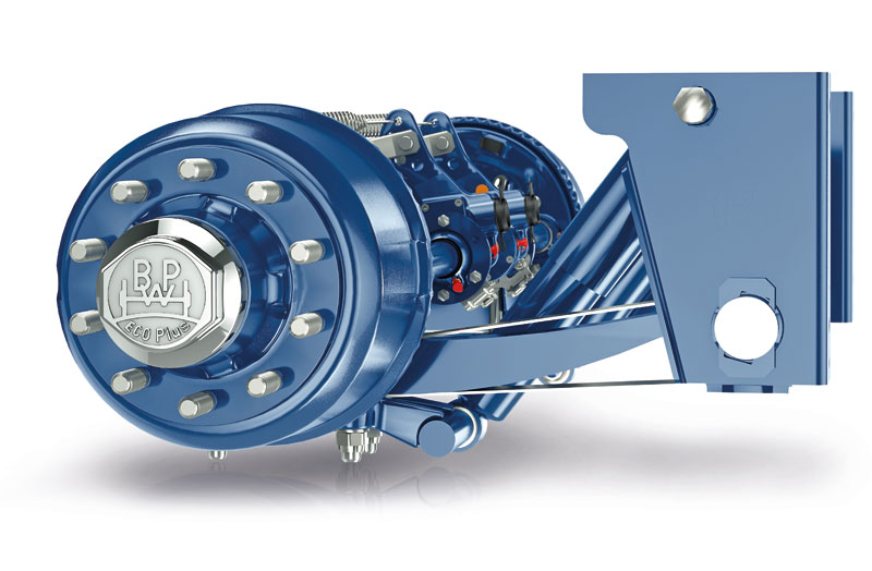 Alle Vorteile der Eco-Plus-Lagerung sind nun auch für 12-t-NH- und -KH-Tiefladerachsen verfügbar: Rasche Demontage des Wheelends (bestehend aus Nabe und Bremstrommel) und Bremsbelagwechsel nach dem »Formel-Eins-Prinzip«, automatisch eingestelltes Lagerspiel durch Zentralverschraubung mit integrierter Drehmomentbegrenzung, komfortable Befettung des Lagers über eine Fettkartusche und das Eco-Seal-Dichtsystem. Weltweit verfügbare DIN-ISO-Kegelrollenlager und austauschbare Dichtelemente unterstützen für minimale Stillstandzeiten. BPW verspricht deshalb höchste Zuverlässigkeit: Die 5+3-Jahre-Eco-Plus-Garantie für luftgefederte Aggregate im On-Road- und Standard-Off-Road-Bereich sieht der Anbieter in der Schwergewichtsklasse als praktisch konkurrenzlos. Sie gilt für Achskörper, Nabe, Nabenlagerung, Luftfedereinbindung und Luftfederstütze. Zusätzlich gibt BPW drei Jahre Garantie auf Luftfederbalg, Stoßdämpfer und Bremszylinder – sie gilt ohne Kilometerbegrenzung europaweit und schließt den Full-Service von einem BPW-Direct-Service-Partner oder einem BPW-Service-Partner ein – an rund 3 200 Stützpunkten weltweit.