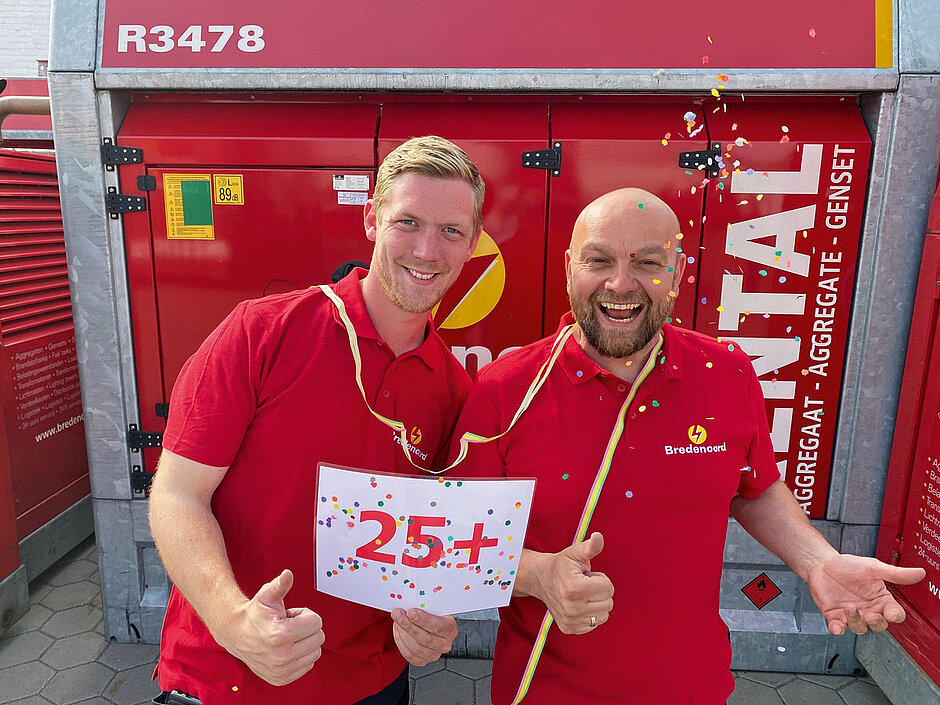 Bredenoord gratuliert zum 25-jährigen Jubiläum! Schön, dass wir unsere Energie mit Euch teilen dürfen, vielen Dank für die tolle Zusammenarbeit! Auf dass es die nächsten 25 Jahre genauso weitergeht und Ihr immer schön unter Strom bleibt – auf Euch!« Hendrik Mohr (Servicemonteur; li.) und Manuel Teufel (Betriebsstättenleiter), Bredenoord Hamburg