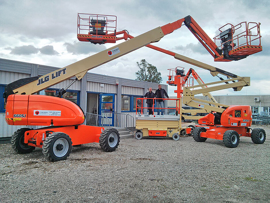 JLG, Haulotte, Genie, Oil & Steel, Omme Lift, CTE, Ruthmann Steiger und Merlo: die Namen im Theisen Bühnenprogramm lesen sich wie das who-is-who der internationalen Top-Hersteller. Die Theisen Baumaschinen AG ist ein internationales Unternehmen der Baumaschinen-Branche, mit über 80 Niederlassungen in Deutschland, Österreich und Ungarn. Seit über 125 Jahren vermietet und verkauft Theisen Baumaschinen, Baugeräte, Baustellenausrüstungen und Werkzeuge. Seit 2011 gehört das Unternehmen zur finnischen Cramo-Group. Theisen bot vor 35 Jahren als eines der ersten Unternehmen Baumaschinen auch zur Miete an. Durchschnittlich jede vierte in Deutschland vermietete Baumaschine kommt heute von Theisen.