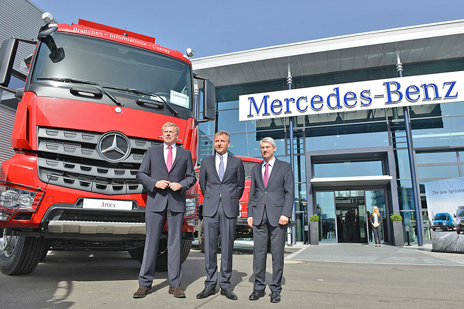 »Nicht umsonst sind wir mit unseren Mercedes-Benz-Lkw die ›Nummer 1‹ in Deutschland und Europa. Denn unsere Lkw sind Benchmark bei den Gesamtbetriebskosten und der Zuverlässigkeit. Das sind für unsere Kunden überzeugende Kaufargumente«, betonte bei der Eröffnung Stefan Buchner, Leiter Mercedes-Benz Lkw. »Unsere Kunden sind auf einen verlässlichen Rundum-Service angewiesen. Nur so können Standzeiten minimiert werden. In den Mercedes-Benz-Nutzfahrzeugzentren bündeln wir unser Service-Angebot und tragen so maßgeblich dazu bei, dass unsere Kunden wirtschaftlich unterwegs sind«, ergänzte Andreas Schmid, Leiter Mercedes-Benz Lkw Vertrieb und Services Deutschland.
