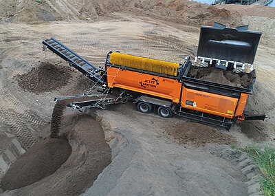 Genau diesem Thema der mobilen Windsichtung hat sich Björn Tepel nun näher gewidmet. Denn neben dem Windsichten während des Brechens sah Tepel auch das allgegenwärtige Problem riesiger Lagerhalden verunreinigten Materials, welche niemand mehr anfassen wollte. Björn Tepel hatte dazu im Sommer 2018 seinen Ansprechpartner Simon Moers aus dem Hause Christophel kontaktiert, um mit ihm hierfür eine praktikable Lösung zu erarbeiten.
