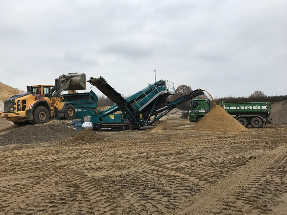 Über viele Jahre hinweg wurde am Standort Wiershop Sand auf den Flurstücken Rappenberg und Pemöller abgebaut. Mit dem Abbau ging auch die anschließende Verfüllung mit unbelasteten Aushubböden voran. Da sich das Verfüllvolumen dem Ende neigt, wurde bereits Ende 2016 mit der Erschließung einer Erweiterungsfläche begonnen. Das Vorkommen dort ist sehr stark mit Lehmadern durchzogen. Die anstehenden Kiese und Sande sind somit als siebschwierig zu bezeichnen, was wiederum den Einsatz einer leistungsstarken Sandsiebanlage verlangt, um einen Füllsand 0-8 mm gewinnen zu können