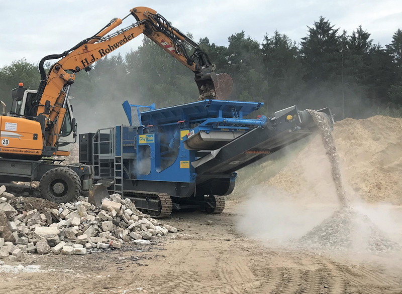 Der CityTrak 9TX zeichnet sich durch ein besonders günstiges Verhältnis von hoher Durchsatzleistung, Bedienfreundlichkeit und geringen Emissionswerten aus«, sagt Abbruchunternehmer Sven Rohweder über seine neue Anlage. Als wegweisend und in der Klasse als einzigartig beschreibt der norddeutsche CityEquip-Händler Christophel den großzügig dimensionierten Aufgabetrichter, der mit einer Länge von 4,6 m die Befüllung mit beispielsweise großen Radladern zulässt. Hydraulisch klappbare Trichterwände, die zum Betrieb bedienerfreundlich verkeilt werden, verkürzen die Rüstzeiten deutlich.
