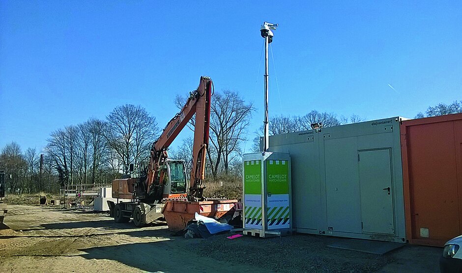 Teure Baumaschinen stehen »abholbereit« auf dem Baufeld, Materialien lagern frei zugänglich. Nachts ist die Baustelle unbewacht und auch die Einzäunung bietet keinen ausreichenden Schutz. Die Firma Camelot bietet mit dem WatchTower ein mobiles Überwachungssystem für Baustellen an, das sich leicht per Radlader oder Gabelstapler versetzen lässt und sich daher flexibel der Baustelle anpassen kann.