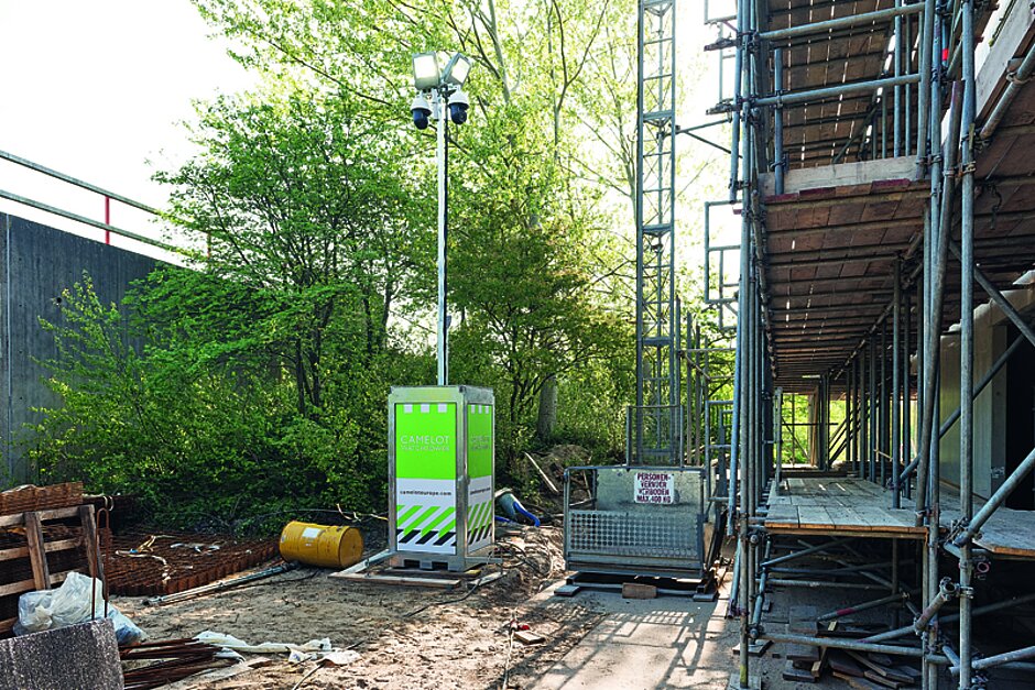Erfasst das System unerwünschte Personen auf der Baustelle, löst es eine Alarmmeldung in der angeschlossenen Alarmzentrale aus, die Sicherheitsdient oder Polizei zur Baustelle beordert. Per Live-Ansprache über integrierte Lautsprecher können potenzielle Täter ebenfalls verscheucht werden. Die gespeicherten Videodaten können dann bei der Täterverfolgung unterstützen. Parkt man außerhalb der Arbeitszeiten die Baumaschinen im Überwachungsbereich des Kameraturms, kann ebenso niemand unbemerkt an diese herankommen – ein Vorteil gegenüber herkömmlichen Sicherheitskonzepten wie GPS-Tracking, die erst dann greifen, wenn die Diebe bereits mit einer wertvollen Maschine »unterwegs« sind. §