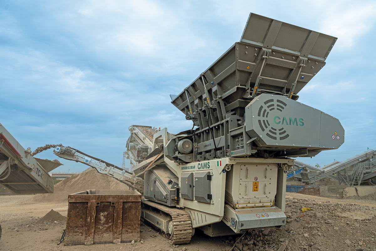 Im Mittelpunkt steht bei Cams vor allem das Modell Centauro und damit eine mobile Anlage, die Schredder, Siebanlage und einen magnetischen Metallabscheider in einer einzigen Maschine kombiniert. Zur Erklärung: Hierbei geht es sowohl um UTM und mobile Zerkleinerungsanlagen als auch um UTS und damit transportable Zerkleinerungsanlagen sowie UCS, mobile und transportable Anlagen zur Sekundärzerkleinerung, UVS, transportierbare Siebanlagen zur Aussonderung von Zuschlagstoffen, Fräsasphalt und Industrieabfällen; und last but not least um FTR, industrielle Primärschredder (stationär oder transportabel), die das Volumen verschiedener Materialien – einschließlich Glas – reduzieren, um den Transport oder die Weiterverarbeitung zu erleichtern.