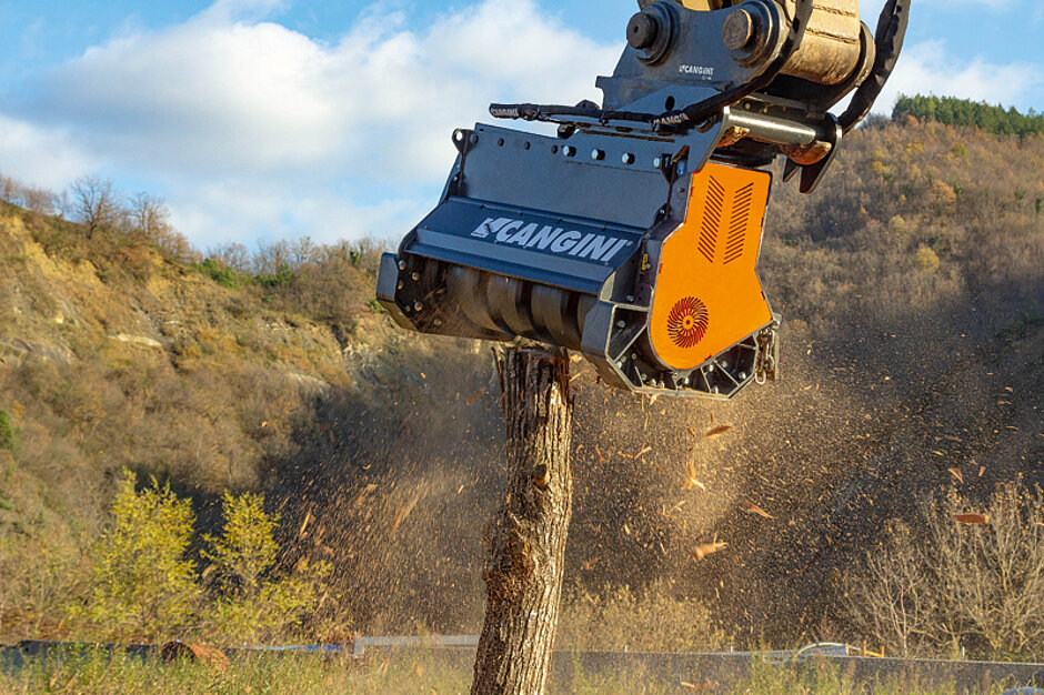 Die Palette für die Grünlandpflege hat Cangini vor Jahren mit einem Mulcher gestartet. Das Anbaugerät blieb über Jahre hinweg das nach Herstellerangaben meistverkaufte Produkt dieser Art auf dem italienischen Markt. Zum Mulcher gesellten sich dann später Astschere, Holzgreifer oder auch Erdbohrer.