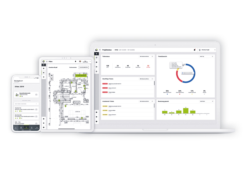 »Mit einem Blick in das Dashboard am PC sehe ich sofort, wie es aktuell auf der Baustelle steht, wo es hakt und welcher Subunternehmer Probleme bereitet. Mit diesem Wissen kann ich früh genug Schritte einleiten, um den Bauzeitenplan einhalten zu können«, sagt Köhler. Dank der Berichtfunktionen könne er die Projektbeteiligten und auch den Bauherren jederzeit über den Status am Bau informieren. Er spare sich so nicht nur jede Menge E-Mails und Rückfragen, sondern auch zeitraubende Ortstermine.