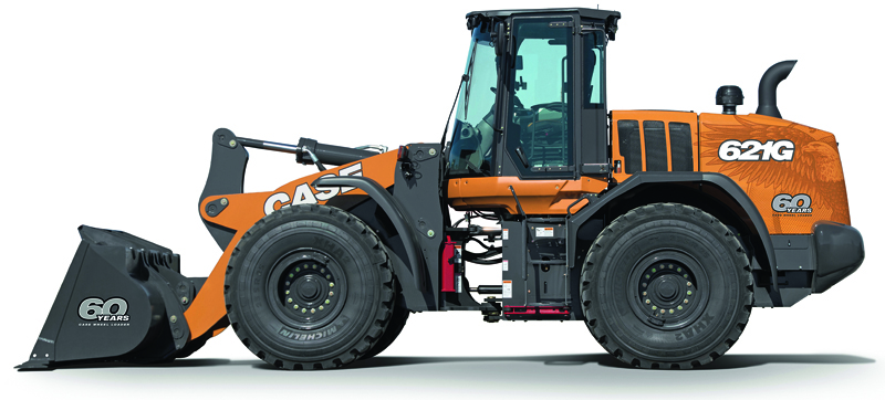 Die Äußerlichkeiten zuerst: Der erste Case-Radlader W9 wurde vor 60 Jahren vorgestellt. Auf dem Jubiläumsmodell eines 621G ziert der Case-Adler im Großformat die elektrisch betätigte Motorhaube. Für GaLaBau-Betriebe ist der 621G ein universeller Leistungsträger. Dank kompaktem Aufbau und der besonderen Übersichtlichkeit – G-Serie-Lader verfügen über eine ungeteilte Frontscheibe – eignet er sich besonders für den Einsatz auf dem Baustoffhof.