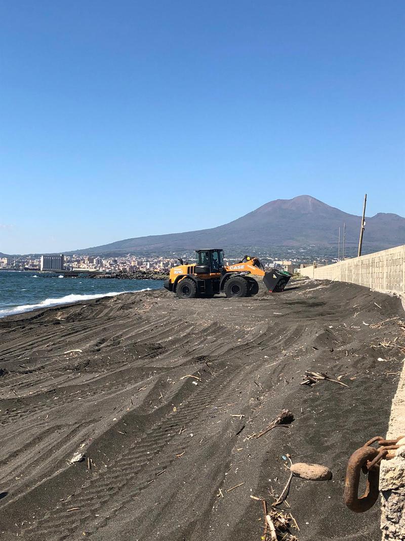 Der Radlader 821G von CASE wurde in der achten Episode vorgestellt, die ausschließlich dem Fluss Sarno gewidmet war. Die Maschine war bei der Säuberung des Strandes in Rovigliano (Torre Annunziata), der Flussmündung des Sarno, im Einsatz.