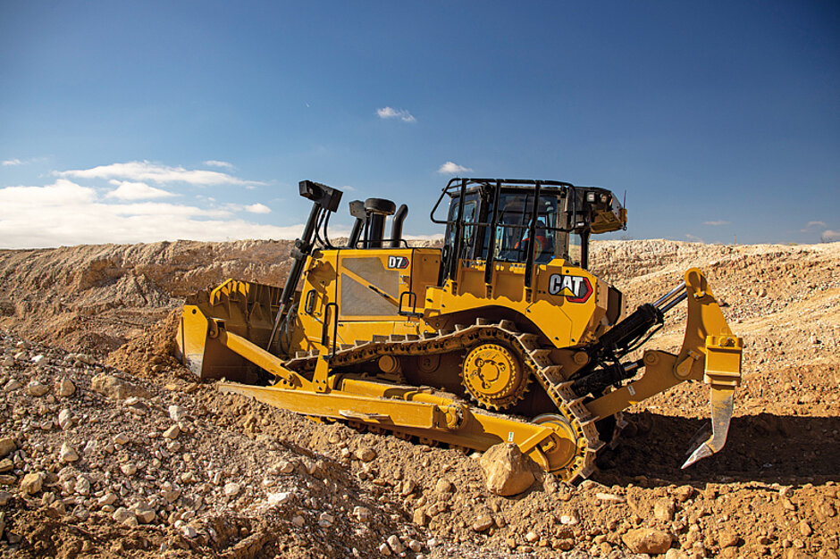 Mit 197 kW (268 PS) Motorleistung und einem Einsatzgewicht von 29 t will der neue Cat-Dozer D7 mehr Effizienz und ein großes Angebot leicht zu nutzender Assistenzsysteme bieten, damit Anwender noch mehr aus ihren Raupen herausholen können. Das Deltalaufwerk sorgt für ein besseres Fahrverhalten, gleichmäßigere Gewichtsverteilung und erhöhte Eindringkraft. So konnte die Schildkapazität des D7 um 10 % erhöht werden – mit dem Ergebnis, dass der D7 nach Herstellerangaben im Vergleich mit dem Vorgänger bis zu 8 % mehr Material pro Stunde bewegen kann.