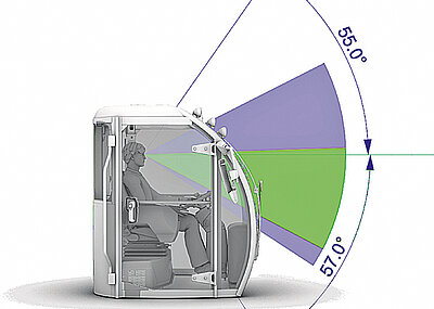 Die Kabinen der Cat-Bagger der nächsten Generation sind serienmäßig mit Funktionen wie schlüssellosem Drucktasten-Motorstart, großem Touchscreen-Monitor mit Tippwählschaltern, sorgfältiger Schalldämmung und Überrollschutz (ROPS, Rollover Protective Structure) ausgestattet und sollen so Fahrerkomfort und Sicherheit auf eine »neue Ebene« heben. Verbesserte Viskoselager sollen die Vibrationen der Fahrerkabine um bis zu 50 % gegenüber früheren Modellen reduzieren. Große Front-, Heck- und Seitenscheiben sorgen für bessere Sicht, und die optionale 360°-Sicht (nur Cat 330) fügt Bilder von mehreren an der Maschine montierten Kameras zusammen, um die Sicht des Fahrers in alle Richtungen zu verbessern. Programmierbare Joystick-Tasten für Ansprechverhalten und Art der Baggersteuerung ermöglichen es dem Fahrer, die Produktivitätseinstellungen anzupassen. §