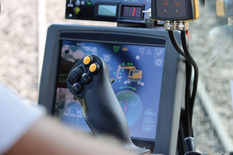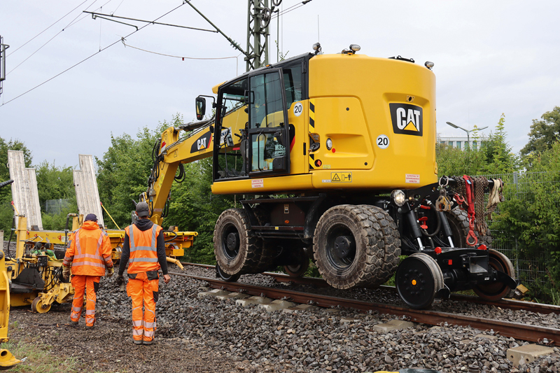 Als Alleinstellungsmerkmal des Cat-Zweiwegebaggers gilt sein hydrostatischer Schienenradantrieb an beiden Gleisachsen. Dieser treibt über hydraulisch betriebene Motoren die Schienenführungsräder direkt an. Somit kann Jörg Sack über Gleisschaltmittel hinwegrollen und dabei die Geschwindigkeit von 20 km/h beibehalten. Der Fahrer muss die Räder des Baggers nicht jedes Mal vor den Schalteinrichtungen im Gleisbett anheben und danach wieder absenken – das vermeidet Schäden an Sicherheitseinrichtungen im Gleisbett. Auch die leicht zu programmierende Hub- und Schwenkbegrenzung erleichtert das Fahren und Arbeiten unterhalb der über die Gleise verlaufenden Oberleitung hindurch.