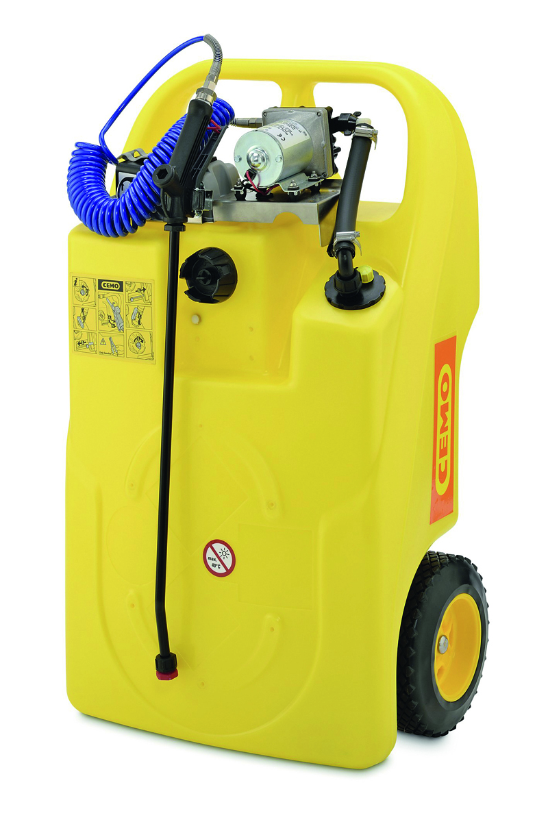 Ein neu ins Cemo-Programm aufgenommener akkubetriebener Sprüh-Caddy bis zu 60 l Auftaumittel erlaubt auch an schwer zugänglichen oder senkrechten Flächen und Gegenständen zu sprühen, an denen festes Streusalz nicht haftet. Statt Salzlauge sind dabei auch biologisch abbaubare Lösungen unterschiedlicher Stoffe einsetzbar.