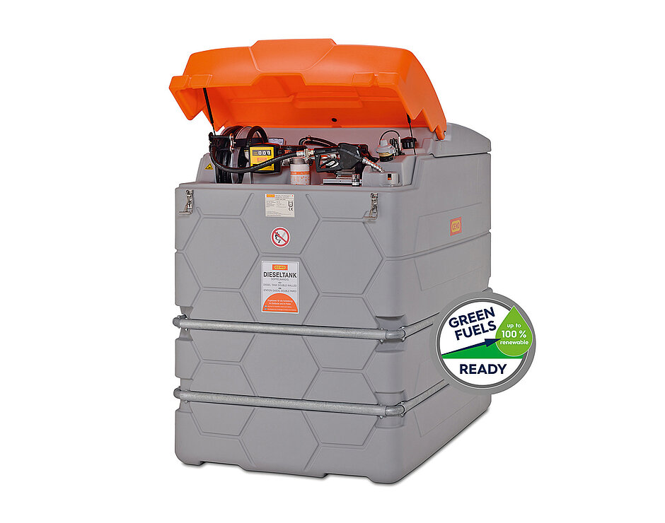 Ob robuste Stahltanks oder leichte »Cube«-Tanks aus PE, jede Ausführung wurde für den Einsatz mit vielen Stoffen mit Flammpunkt >55 °C zertifiziert. Das reicht von den modernen Treib- und Heizstoffen wie Synthese-»HVO100« und herkömmlichem Biodiesel (FAME) sowie reinem Pflanzenöl bis zu Schmier-, Hydraulik-, Wärmeträgerölen. In »Cube«-Tanks können auch Ethylenglycol-Frostschutz, »AdBlue«-Harnstofflösung und gebrauchte Schmier-, Hydraulik-, Wärmeträgeröle gelagert werden. Je nach Ausführung lassen sich die Tanks mobil zur Versorgung im Forst oder auf der Baustelle mit Diesel und »AdBlue« einsetzen oder sie dienen zur mobilen Ölversorgung von Zeltheizungen und Generatoren. Auch Varianten für die Aufstellung in Wasserschutzgebieten sind verfügbar.d