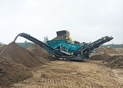 Der RM 90 von Rubble Master (siehe auch Seite 40) und die W 800 von Powerscreen zeigen in Neumünster zudem alternative Anlagenkonzepte für Betreiber, deren Aufgabenstellung und Zielfraktionen andere Lösungsansätze erforderlich machen. §