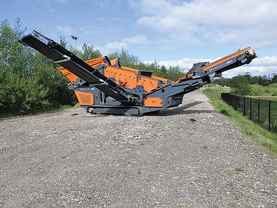 Die MR 6 von Portafill könnte wahlweise vor oder nach dem Metrotrak eingesetzt werden. Der neue Metrotrak von Powerscreen erscheint in leichterem gewichtsoptimierten Kunststoffgewand auf der Nordbau. Bekannte Metrotrak-Eigenschaften werden mit einem flacheren, 3 200 mm hohen, starren Trichter kombiniert. Der Brecher misst eine Einlauföffnung von 900 mm x 600 mm. Wie Christophel betont, kann die hydraulische Spaltverstellung in Verbindung mit dem Reversierantrieb Blockaden in der Brechkammer beseitigen und den dieselsparenden Brecherdirektantrieb ohne Komfortverluste in allen Betriebszuständen nutzen. Mit Magnet und Seitenband wiegt der Metrotrak lediglich 28 t.