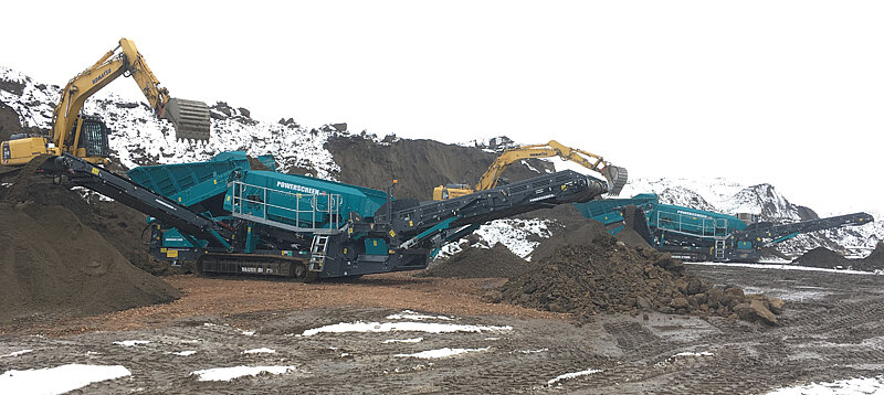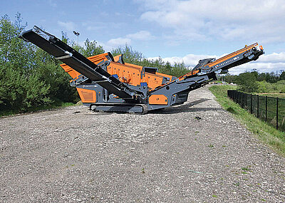 Besonderes Augenmerk widmeten Frank Albert und seine Mitarbeiter in der „Sandgrube Biesen“ den beiden zuletzt gelieferten Warrior 2100 Modellen. Die Aufbereitung von bindigen Aushubböden mit maximaler Leistung bei möglichst feinem Trennschnitt stand bei der Aufgabenstellung zum Kauf im Vordergrund. Zwar konnten die vorhandenen Powerscreen Warrior-Modelle das entsprechende Material durchaus bewältigen, die Durchsatzmengen bei dem zum Teil auch mit groben Bauschutt verunreinigten Material hielt Firma Albert jedoch für steigerungsfähig. Zumal entsprechend großes Beladegerät für höhere Leistungen durchaus zur Verfügung stand. Bei Lieferung der ersten Warrior 2100 war den Beteiligten schnell klar, dass diese Maschine ihre schon leistungsfähigen Vorgänger nochmals deutlich übertraf. Mit dem 1,5 x 5,0 m großen Siebkasten – angetrieben über 3 schwere synchronverbundene Siebwellen – konnte das Gerät schon nach kurzer Testphase unter Beweis stellen, welche Reserven in ihm stecken. Streckenweise wurde die Aufgabeleistung im Vergleich zur Warrior 1400 verdoppelt. Extremes Aufgabegut konnte nun überhaupt erst aufbereitet werden, da es zuvor zu verklebten Siebbelägen führte. Bei Nässe musste das Arbeiten vorher teilweise sogar eingestellt werden. Nicht so bei der Warrior 2100. Hier sorgen Hub und Beschleunigung am Siebkasten für Effizienz – auch unter widrigen Randbedingungen.