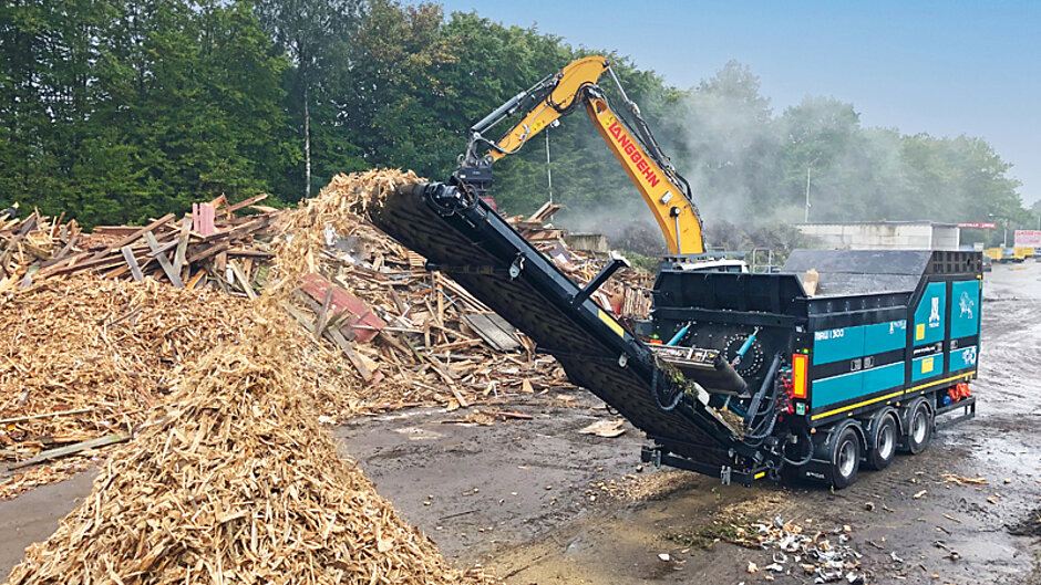 »Mit der MRW 1.300 haben wir unser Überkorn in der Altholzaufbereitung auf Null reduziert und erreichen nahezu vollständig unser Zielprodukt von 20 – 250 mm«, begeistert sich Heino Langbehn. Denn bislang blieben etwa 10 % des ausgeworfenen Materials ungenutzt. Zu faserig, sodass es auch bei erneuter Aufgabe nicht weiter zerkleinert werden konnte. »Das sorgt nicht nur dafür, dass ich jetzt eine Menge an Haldenfläche spare, wo ich das nicht verwertbare Material bis zur endgültigen Entsorgung sonst zwischengelagert habe. Ich spare auch die Entsorgungskosten.« Und mit dem erhöhten Anteil an verwertbarem Material erzielt Langbehn künftig auch einen höheren Gewinn. t