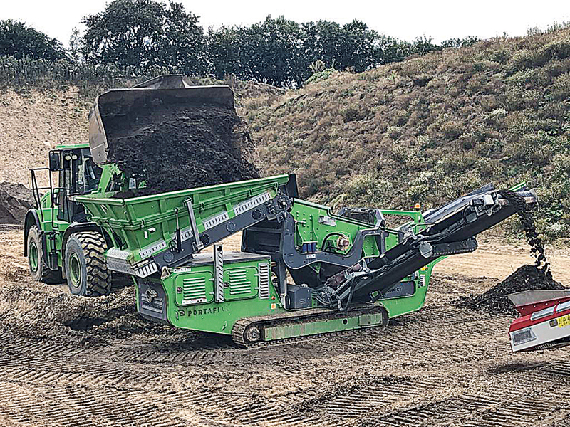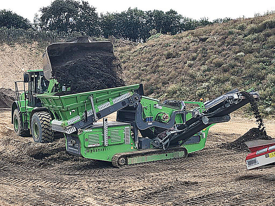 Das Überkorn wird verschleißarm in Flussrichtung über einen 1 000 mm breiten Profilgurt ausgetragen. Mittel- und Feinkorn werden über die beiden 750 mm breiten Seitenaustragbänder auf rund 2,9 m aufgehaldet. Auf Wunsch kann auch ohne Umbauten per Hydraulik über eine 2-in-1-Option das Mittelkorn zusammen mit dem Überkorn ausgetragen werden. Sparsam zeigt sich der Antrieb, der über einen Deutz-Dieselmotor mit 40 kW (53 PS) erfolgt. Mittlerweile würden es die Kunden schätzen, so berichtet Alexander Schwartz, dass mit nur einem Ansprechpartner die Baustellen »absolut flexibel und aus einer Hand« abgewickelt werden könnten. Die Siebanlage habe hierzu als ergänzender Baustein den Ausschlag gegeben. Für Alexander Schwartz die nach eigenen Angaben »beste Investition seit Jahren«. t