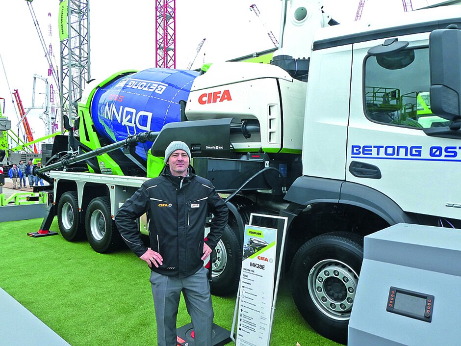 Seit letztem Jahr verbindet Cifa seine eigene Erfahrung mit der von Euromecc im Bereich der stationären und mobilen Betonmischanlagen, die unter der Marke Cifa by Euromecc vertrieben werden und mit einem eigenen Stand im Bauma-Freigelände vertreten waren. Vorgestellt wurde hier das Anlagenmodell FiveTech 1500B mit einer Produktionskapazität von 65 m³/h, das sich durch eine Rekordmontagezeit und eine entsprechende Kostenreduzierung ohne Fundament- und Mauerwerksarbeiten auszeichnen soll. §