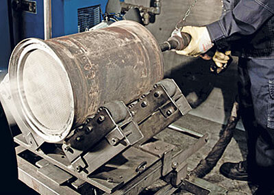 Auch die Gewichtsveränderung vor und nach der Reinigung wird verglichen, um den Reinigungserfolg präzise dokumentieren zu können. Ein weiterer wichtiger Schritt in der Qualitätskontrolle ist die Gegendruckprüfung – erst wenn hier ein Wert erreicht wird, der dem eines neuen Originalteils entspricht, ist der Prozess abgeschlossen. Stichprobenartig wird im Anschluss daran auch noch eine Kanalprüfung vorgenommen, um deren Verstopfung mit Ascheresten ausschließen zu können. Sämtliche Dokumentationsdaten werden dem Kunden zur Verfügung gestellt. §
