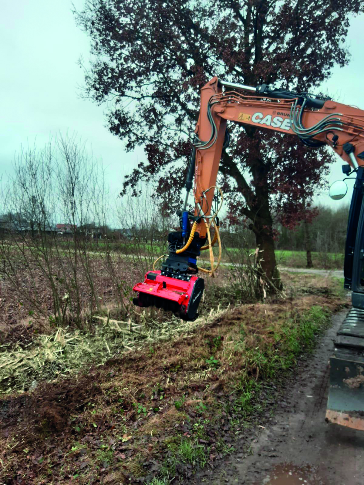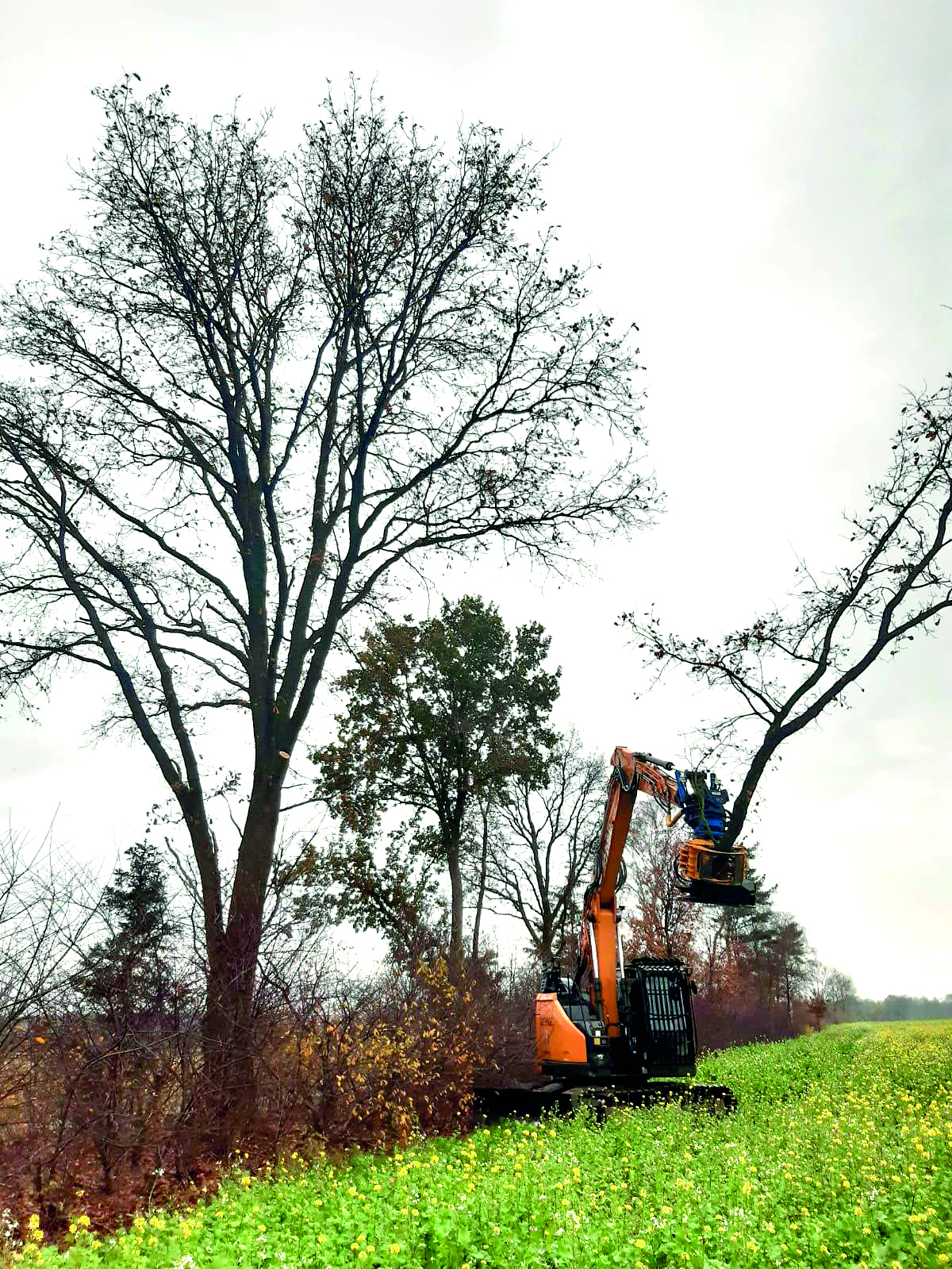 Beim Fuhrpark des Unternehmens lag der Fokus zunächst vor allem auf klassischer Landtechnik aus dem Hause CNH Industrial. Ende 2019 wurde dann ein KurzheckRaupenbagger vom Typ CASE 145D SR mit Schild und Verstellausleger als Ergänzung beschafft. Seitdem konnte der Raupenbagger vor allem in verschiedensten Forsteinsätzen überzeugen, kommt mit seinem kurzen Heckradius aber auch regelmäßig bei klassischen Baggerarbeiten zum Einsatz.