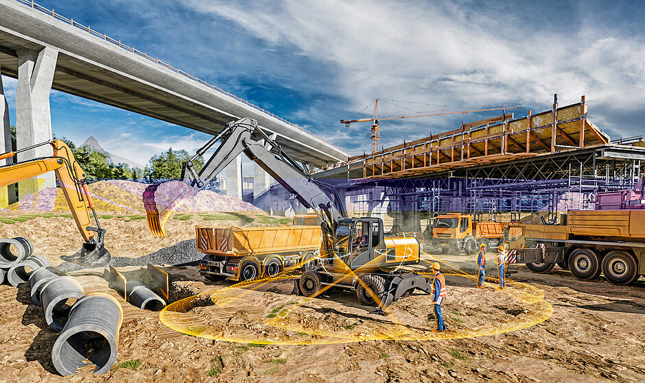 Zusätzlich zu dieser 360°-Rundumsicht wurden nun speziell für den Einsatz auf Baustellen und im Bergbau neue Features entwickelt. Die Worker Detection baut auf der Arbeit von Pkw-Entwicklerteams für den City-Notbremsassistent auf. Experten für Spezialfahrzeuge haben auf dieser Basis ein Feature für Baumaschinen entwickelt. Mithilfe eines speziell auf die unübersichtlichen Bedingungen einer Baustelle abgestimmten Algorithmus können Menschen im Nahfeld der Baumaschine erkannt und so Kollisionen verhindert werden.