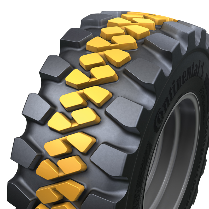 Telehandler und Kompaktlader drehen und rangieren auf hartem Untergrund und auf der Stelle, was den Seitendruck auf den Reifen erhöht. »Die verdrillte Stahlgürtelkonstruktion ist Teil des einzigartigen Turtle-Shield-Designs und sitzt unter dem Gummi des Reifens, um den Schulterbereich des Reifens vor Beschädigungen wie Schnitten und dem Eindringen von Fremdkörpern zu schützen«, so Hübner. Der höhere Gummianteil mit fein strukturierten Profilblöcken soll für eine bessere Laufleistung auf hartem Untergrund und leichteres Rangieren auf der Stelle sorgen. Produziert werden die Reifen im portugiesischen Continental-Werk Lousado.