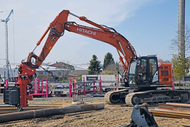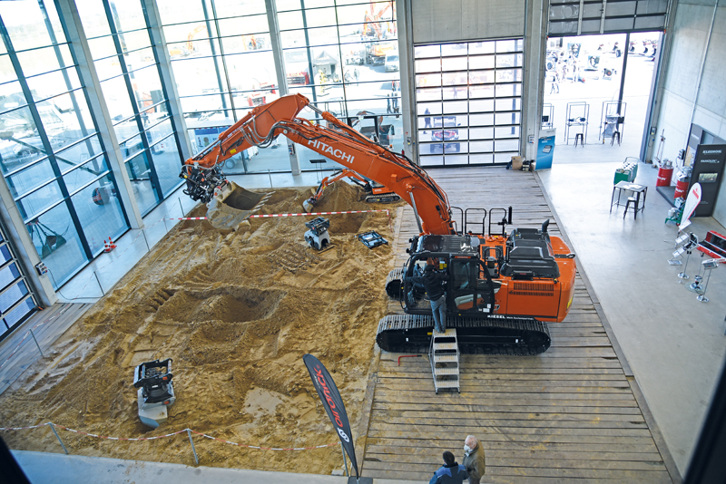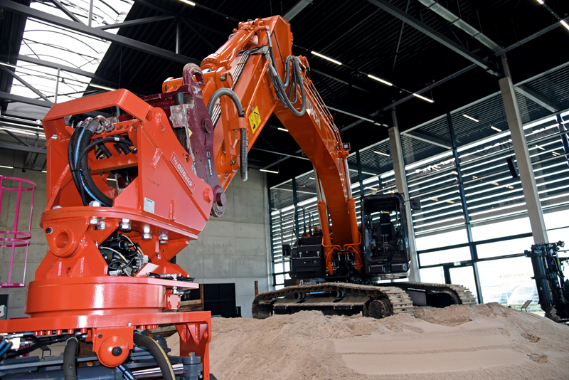 In den Innenräumen sowie auf den verschiedenen Demobaustellen wurde gezeigt, wie der Bagger als Geräteträger vielseitig eingesetzt wird: mit Paddeln als Bodenmischer zur Umweltsanierung, Verfestigung und Stabilisierung, mit Bohrpfahlkopffräsen zur Bearbeitung von Bohrpfählen oder auch mit der Seitengrifframme für schnelles Setzen von Spundbohlen, H-Trägern und Rohrpfählen, wie sie etwa von Partnern wie Bauer, Movax oder Rockzone zum Einsatz kamen. Zu entdecken gab es auch neue Anbaugeräte, Werkstattlösungen und Ausrüstung für mehr Sicherheit auf der Baustelle.