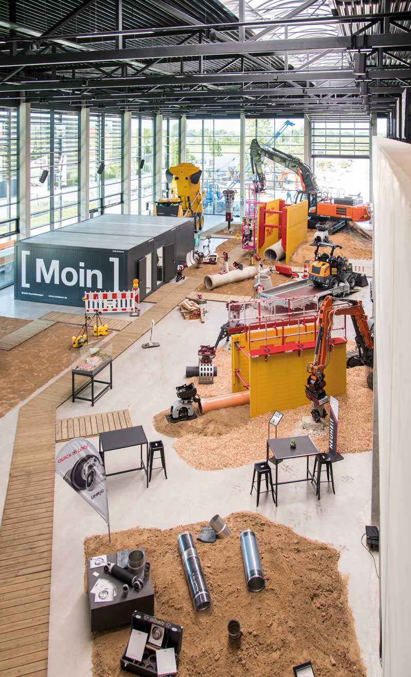 Beim Betreten der Expo-Halle, der Galerie oder des Außenbereichs wird deutlich, dass das Zusammenspiel von Theorie und Praxis tatsächlich funktioniert: Maschinen, Anbaugeräte und Baustellen-Equipment lassen sich inmitten von Schotter und Sand anfassen und ausprobieren – darauf bedacht, dass die Präsentation von Produkten realitätsnah und damit glaubwürdig bleibt. Als eine große Stärke des Coreums beschreibt Kathrin Kiesel außerdem die große Flexibilität: »Sowohl die Fachvorträge als auch die Ausstellungsstücke spiegeln das wider, was der Markt gerade sehen will.« Ziel ist es laut Björn Hickmann, mit der Expo einen Treffpunkt der Branche zu schaffen, der sich auf die tatsächliche Praxis am Bau bezieht. »Wichtig ist auch, dass der Austausch mit den Besuchern auf Augenhöhe passiert. Profis zeigen Profis die Themen auf, was die Ausstellung authentisch macht.«
