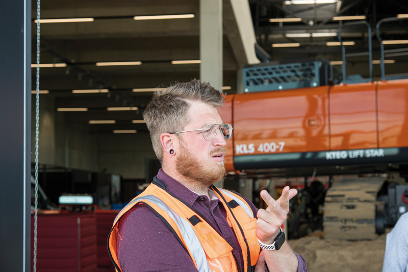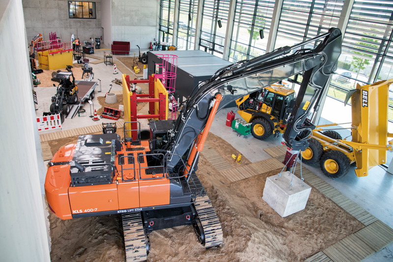 Eine Besonderheit des Coreums ist auch das Gelände selbst: Neben der vielseitigen Außenanlage bieten sich im Hauptgebäude beispielsweise bis zu 12 m hohe Werkstätten, die als Trainings- oder Schulungsraum genutzt werden können. Während also erklärt wird, wie sich ein 30-t-Bagger bedienen oder warten lässt, steht dieser gleich mit im Seminarraum. »Durch die großzügigen Räumlichkeiten und Zugänge haben wir die Möglichkeit, direkt an der Maschine zu lernen. Das erleichtert den Wissensaustausch und das Netzwerken enorm«, erläuterte Björn Hickmann.