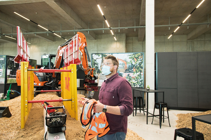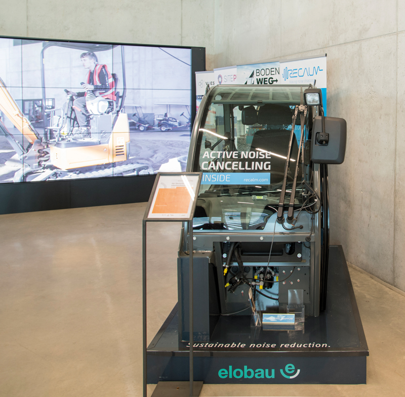 Aktuell verzeichnet das Coreum 49 teilnehmende Partner – eine Zahl, die laut Hickmann noch weiter steigen wird. Ein gutes Beispiel dafür, wie sich eine Plattform wie das Coreum sinnvoll nutzen lässt, ist die Recalm GmbH. Das noch junge Unternehmen aus Hamburg hat ein auf Antischall basierendes System namens ANCOR entwickelt, das zur Lärmminderung in Fahrzeugkabinen eingesetzt wird und damit schädliche Geräusche auf Knopfdruck reduziert (das bauMAGAZIN berichtete darüber in Heft 3/21, Seite 26). Der Clou: Trotz der Gegenfrequenz bleiben andere Geräusche wie etwa durch Funkgerät, Radio, Telefon oder Gespräche mit dem Vorarbeiter weiter hörbar. Als Partner stellt Recalm seine Active-Noise-Cancelling-Lösung (ANC) derzeit im Start-up-Bereich der Expo-Halle aus. Und damit ist das Unternehmen auch ein Beispiel dafür, dass Sicherheit am Bau mehr Gehör findet. »Generell hat sich das Thema Arbeitssicherheit in den vergangenen Jahren zu einem wichtigen Teilbereich entwickelt, der verstärkt nachgefragt wird. Gleichzeitig ist es aber auch notwendig, dieses Wissen direkt zu vermitteln, um das Arbeiten auf der Baustelle künftig noch sicherer zu machen«, so der Anwendungsberater und Branchenexperte Philipp Ellsäßer.