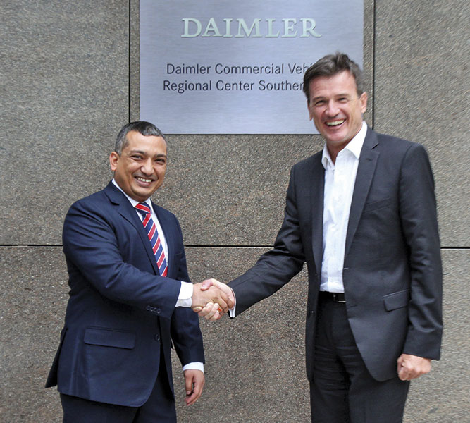 Seit der Eröffnung des ersten Regionalzentrums in Dubai im letzten Oktober 2015 hat Daimler Trucks in einem Zeitraum von rund sieben Monaten in allen wichtigen Wachstumsregionen seine Vertriebs- und Serviceaktivitäten neu ausgerichtet. Das neue Regionalzentrum Daimler Commercial Vehicles Center Southern Asia (DSA) ist für sechs Märkte, darunter Sri Lanka, Bangladesch und Myanmar, verantwortlich. Das Zentrum unterstützt aus Chennai die Vertriebs- und Serviceaktivitäten von BharatBenz-Lkw, Mercedes-Benz-Lkw und -Bussen sowie Fuso-Lkw und -Bussen. »Daimler Nutzfahrzeuge konnte im Raum Südliches Asien im vergangenen Jahr 43% mehr Einheiten verkaufen als im Vorjahr– das zeigt das Wachstumspotenzial dieser Region«, betont Wolfgang Bernhard, im Vorstand der Daimler AG verantwortlich für Daimler Trucks & Buses.