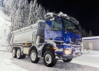 Kontrolliertes Bremsverhalten: Der Unimog bietet hohe Bremssicherheit durch ein Zwei-Kreis-Betriebsbremssystem mit Scheibenbremsen an allen vier Rädern. Dank Vier-Kanal ABS bleibt der Unimog bei einer Vollbremsung lenkfähig und spurstabil. Hierzu trägt auch die ausgewogene Achslastverteilung des Unimog bei. Die Automatisch-Lastabhängige-Bremse (ALB) regelt die Bremskraft und Bremskraftverteilung zwischen Vorder- und Hinterachse abhängig von der Beladung. Mit Hilfe eines beheizten Lufttrockners funktioniert die Bremsanlage auch bei feuchtkaltem Wetter zuverlässig. Abgerundet wird das Paket der Sicherheitsfeatures durch den permanenten Allradantrieb. Und sollte es trotzdem zu einem Unfall kommen, so wird der Fahrer durch Dreipunkt-Sicherheitsgurt integrierte Kopfstütze geschützt.