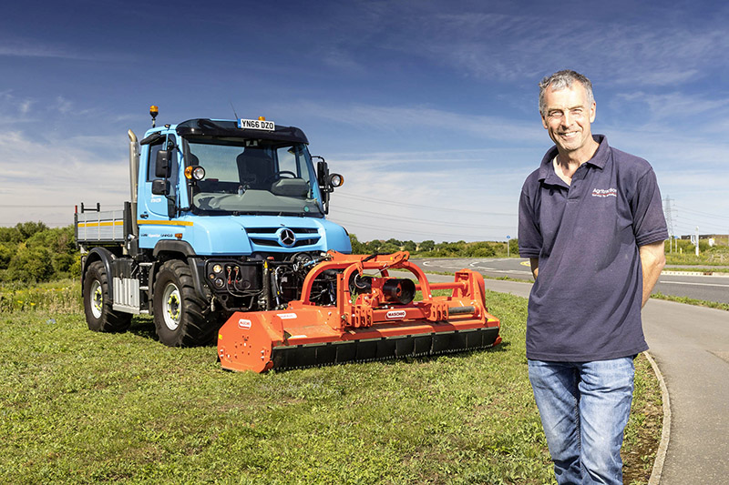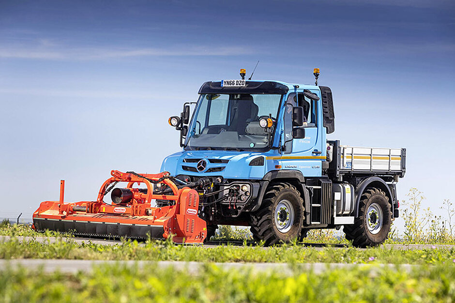 Guy Gregson kennt und schätzt den Unimog schon sein ganzes Berufsleben lang. „Mit meinem letzten Unimog U 1600 bin ich fast 300 000 Kilometer gefahren. Er hat mich nie im Stich gelassen.“ Mit dem neuen U 218 hat Gregson seine Möglichkeiten noch einmal erweitert. „Er passt perfekt zu meinen Aufgaben. Die kleine, aber leistungsstarke Maschine lässt sich wirkungsvoll einsetzen. Gerade auch auf engstem Raum“. In seinem Arbeitsalltag bieten die mechanischen und hydraulischen Geräteantriebe des U 218 samt Frontzapfwelle ideale Voraussetzungen, um diverse Anbaugeräte einzusetzen.