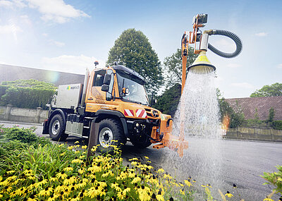 - Kraftstoffsparender Vierzylindermotor mit 130 kW (177 PS) macht den Unimog autobahntauglich