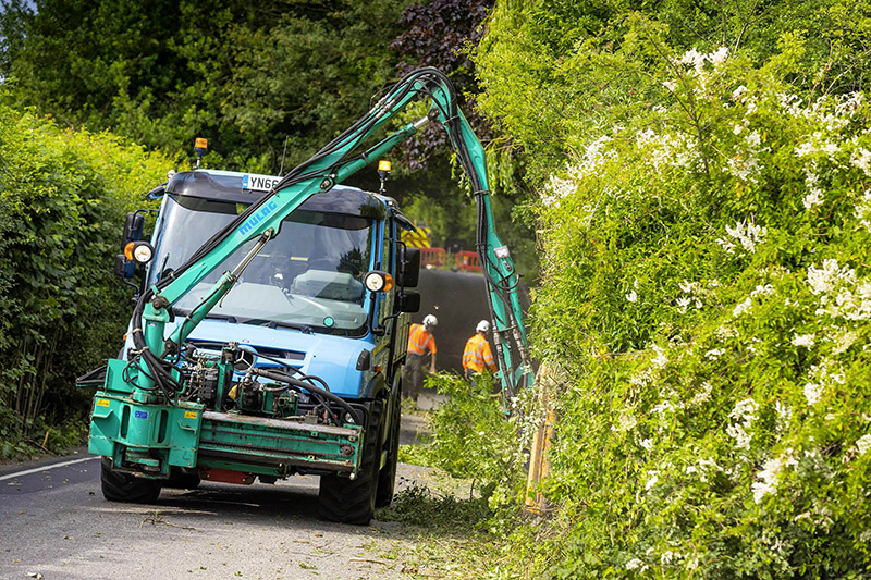 Mit seinem Unimog kann Gregson deshalb Aufträge aus höchst unterschiedlichen Bereichen annehmen: Im Sommer schneidet er Hecken und mäht Parkanlagen. Im Winter leistet er Winterdienst, in der warmen Jahreszeit die Grünstreifenpflege. Auch im Agrarsektor erledigt Gregson Aufträge: Saat ausstreuen oder Heu pressen ist dann angesagt. Einen weiteren wichtigen Kundenkreis hat sich der umtriebige Brite mit dem Lieferverkehr erschlossen. Als Transporteur ist er für Firmen aus dem Handel und dem Gewerbe unterwegs.